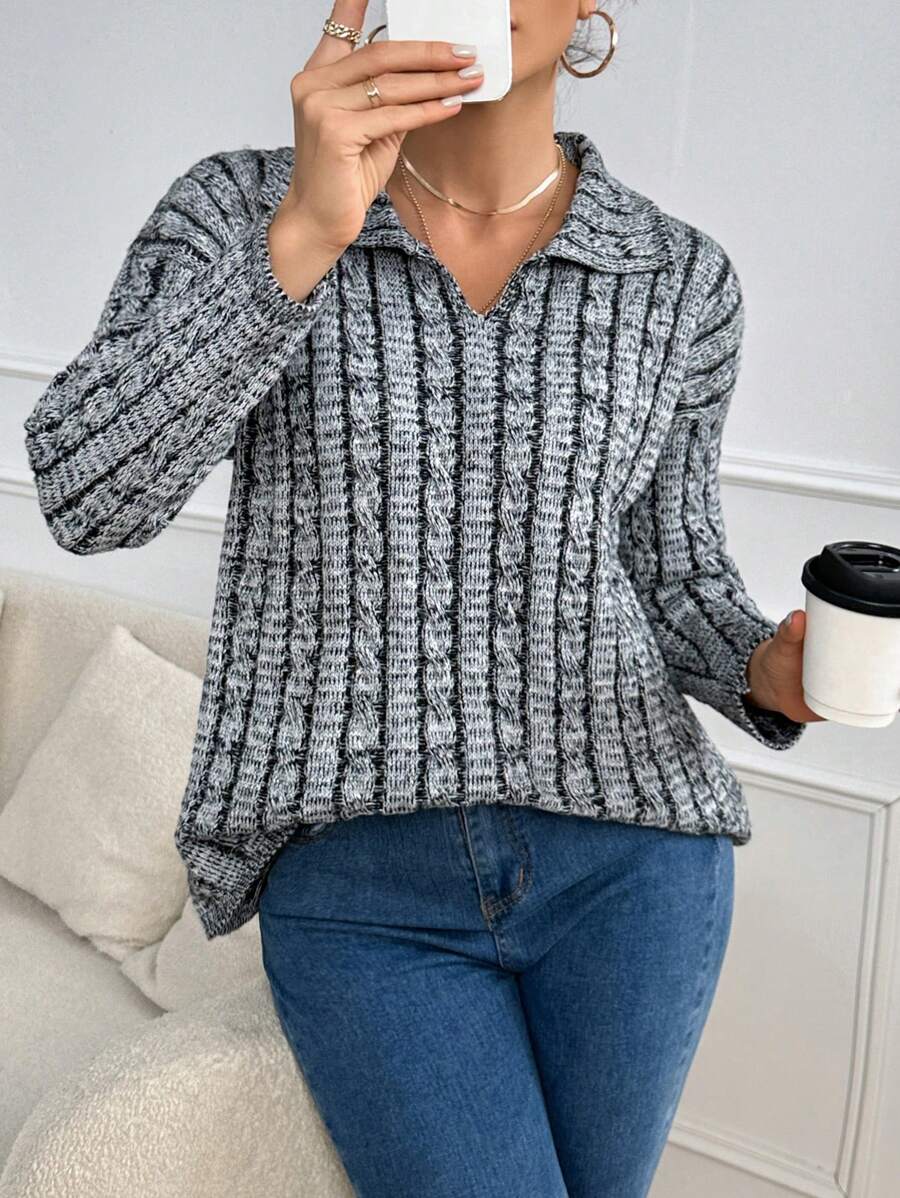 SHEIN LUNE Marled Knit Half Zip Drop Shoulder Sweater
