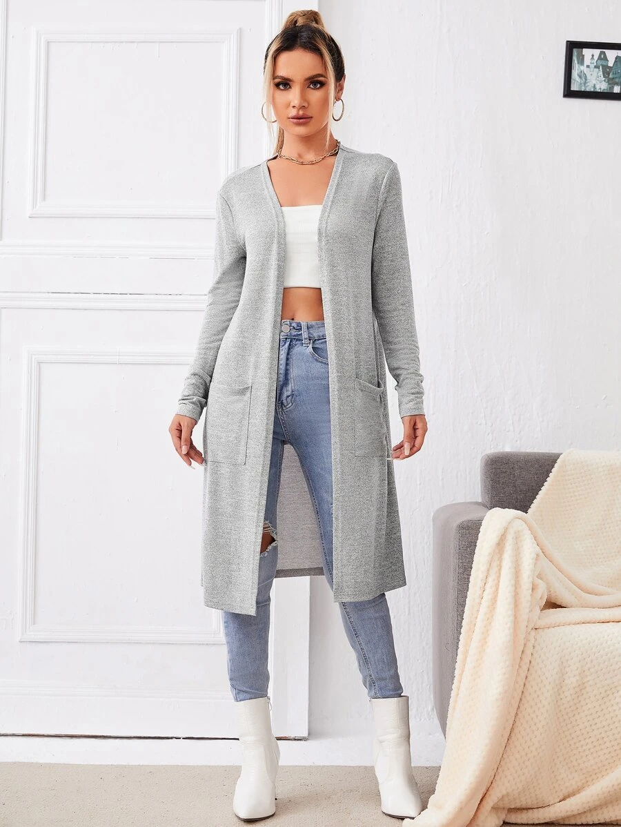 SHEIN LUNE Marled Knit Open-Front Longline Coat