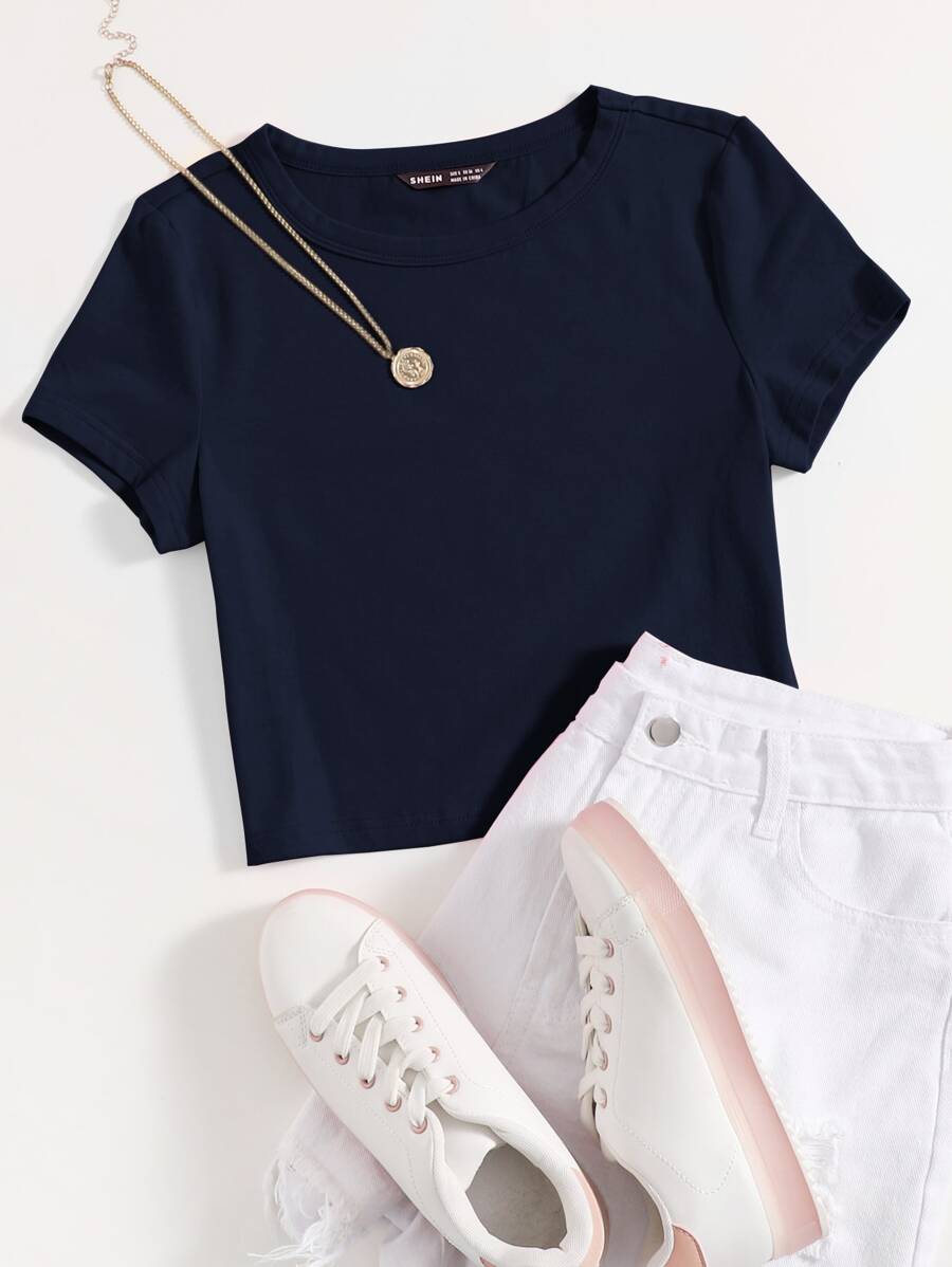 SHEIN EZwear Marled Knit Solid Tee