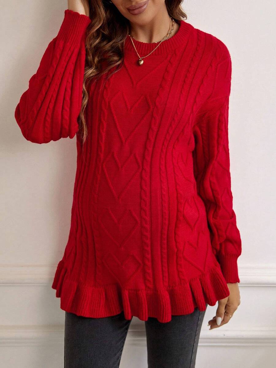 SHEIN Maternity Cable Knit Drop Shoulder Ruffle Hem Sweater
