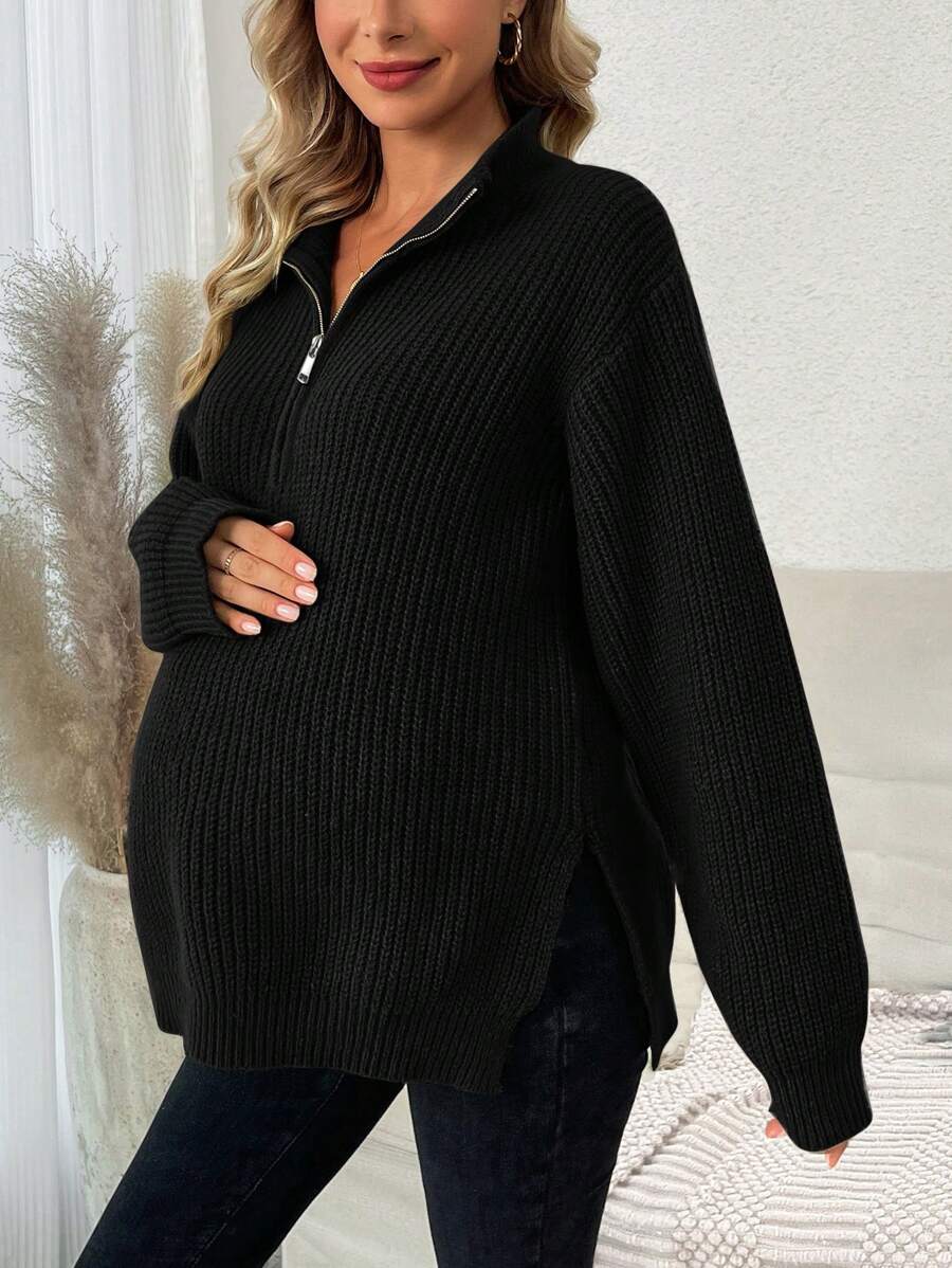 SHEIN Maternity Collared Slit Hem Sweater With Wrap Front
