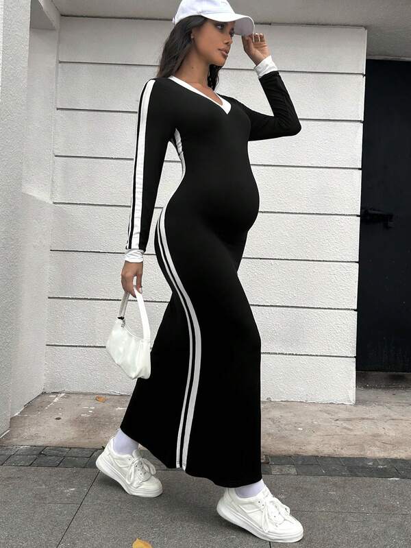 SHEIN Maternity Contrast Side Seam Dress