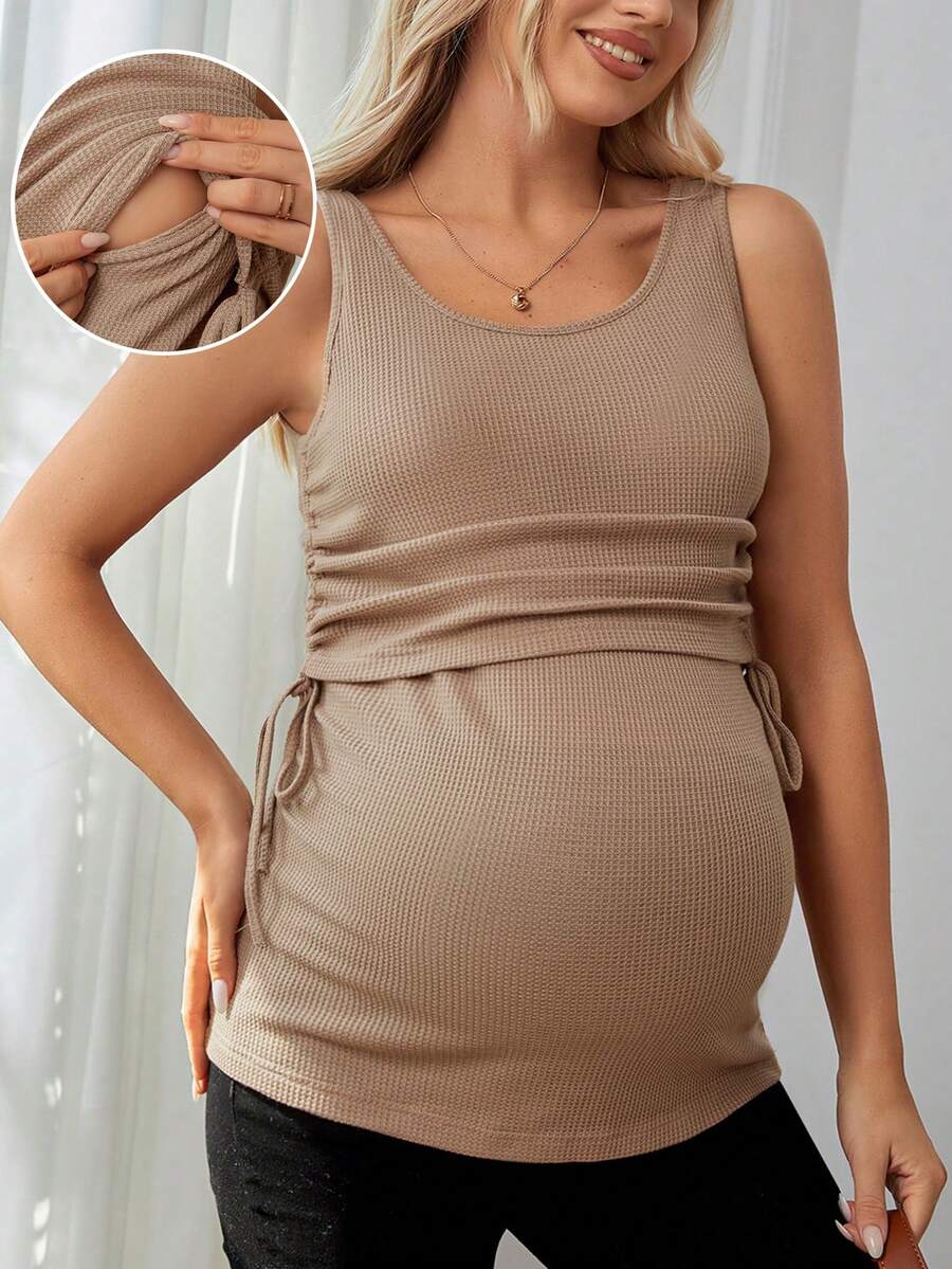 SHEIN Maternity Drawstring & Pleated Nursing Tank Top