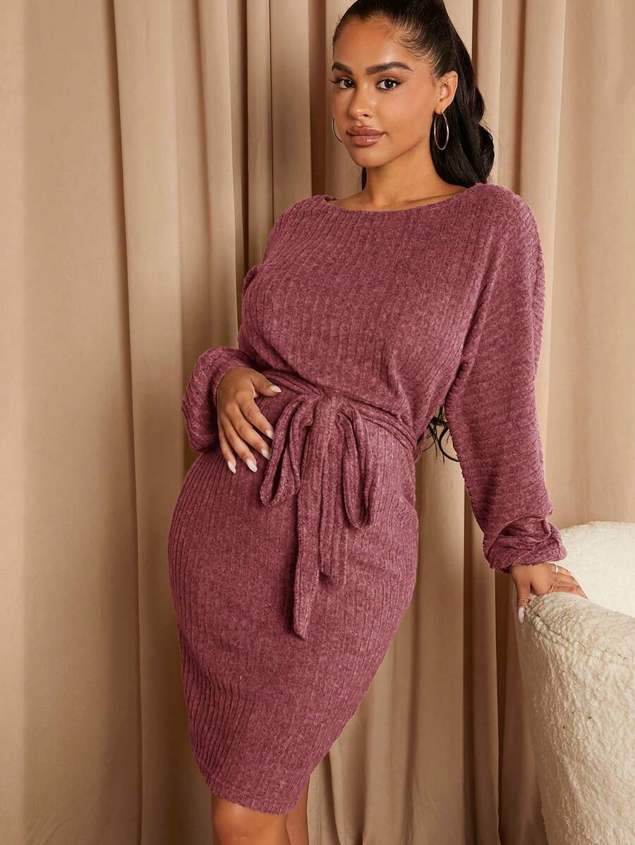 SHEIN Maternity Drop Shoulder Belted Bodycon Dress