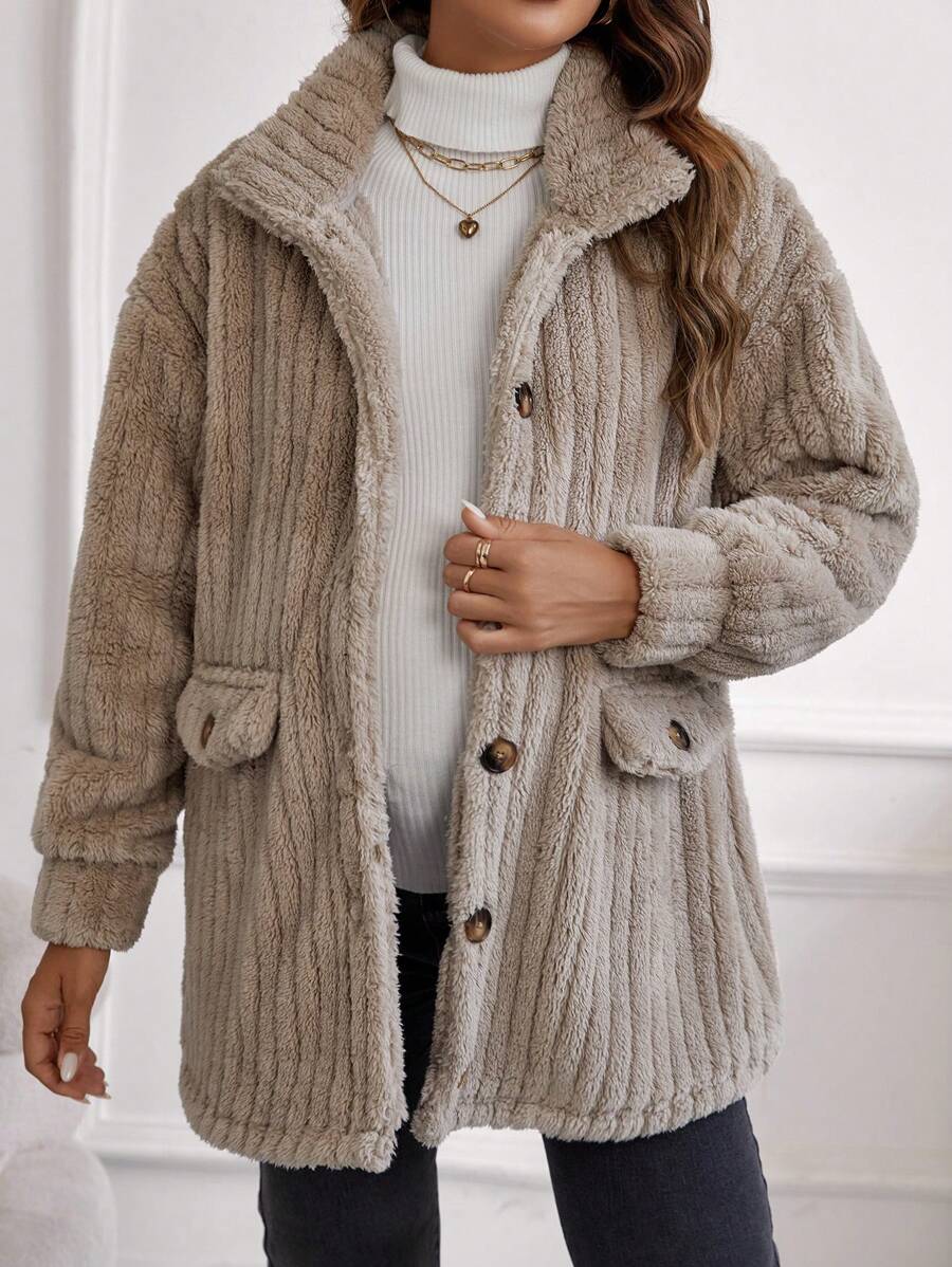 SHEIN Maternity Drop Shoulder Flap Detail Teddy Coat
