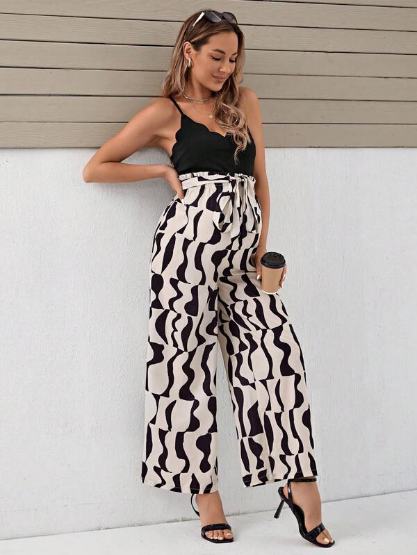 SHEIN Maternity Graphic Print Belted Cami Jumpsuit