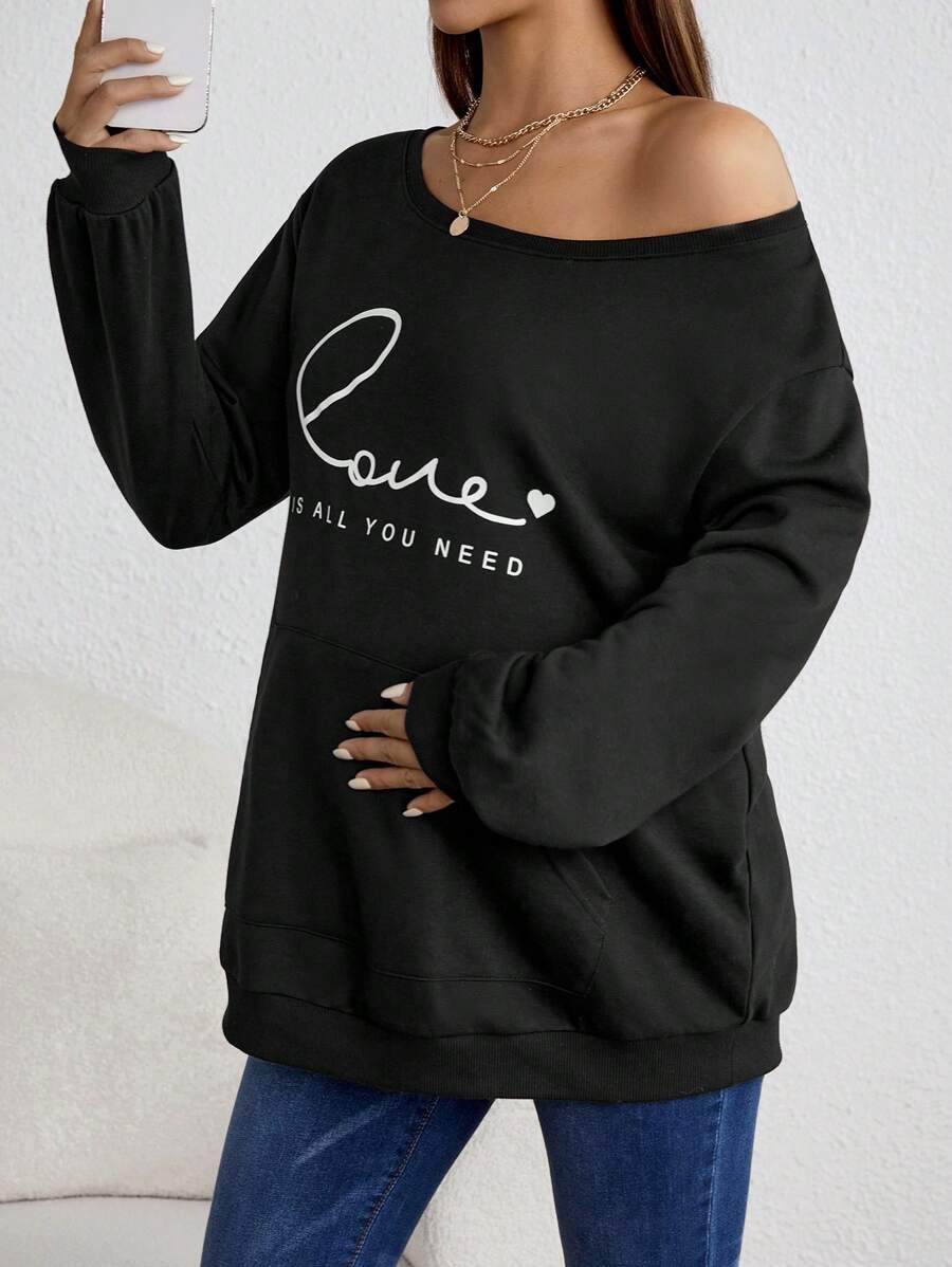 SHEIN Maternity Letter Graphic Kangaroo Pocket Drop Shoulder Sweatshirt