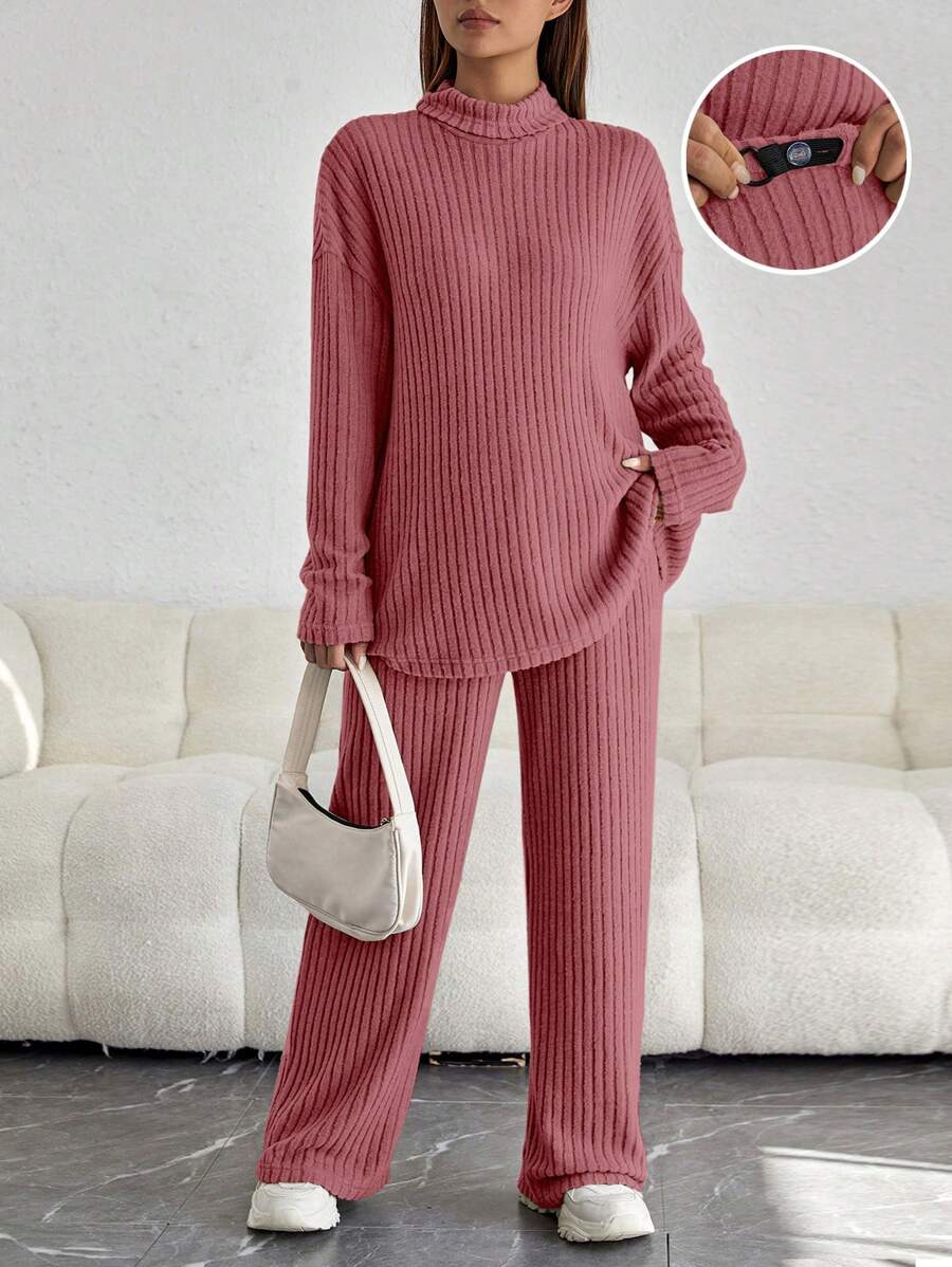 SHEIN Maternity Mock Neck Drop Shoulder Tee & Adjustable Waist Pants