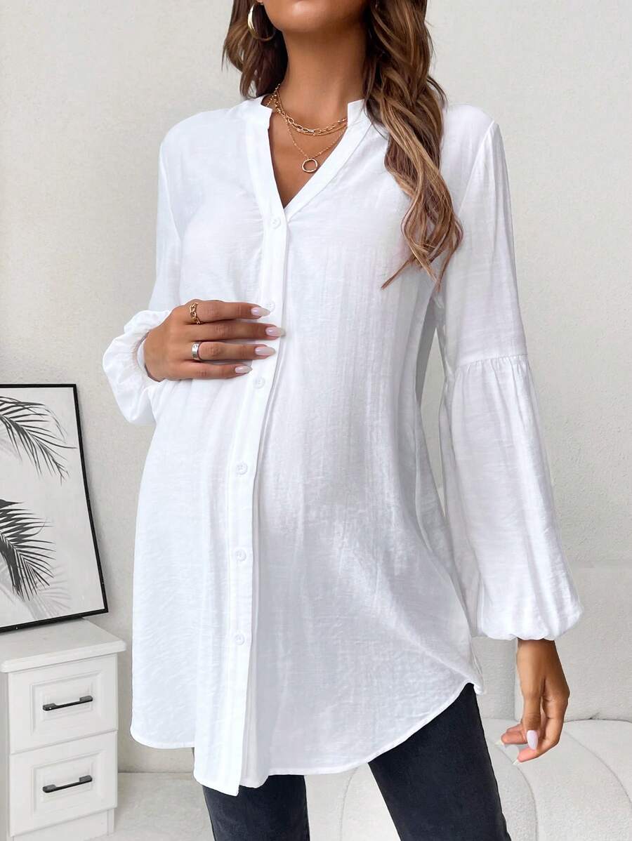 SHEIN Maternity Notched Neckline Lantern Sleeve Blouse