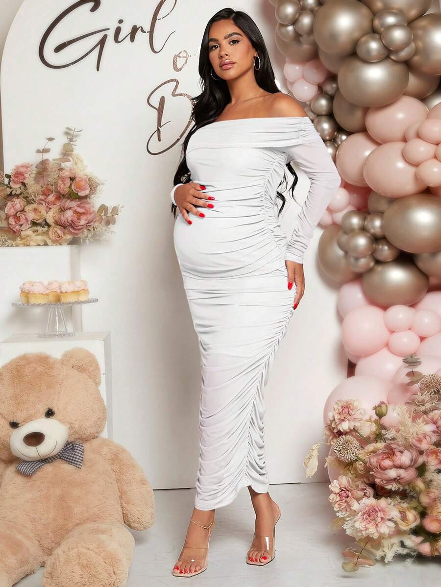 SHEIN Maternity Off Shoulder Ruched Bodycon Dress
