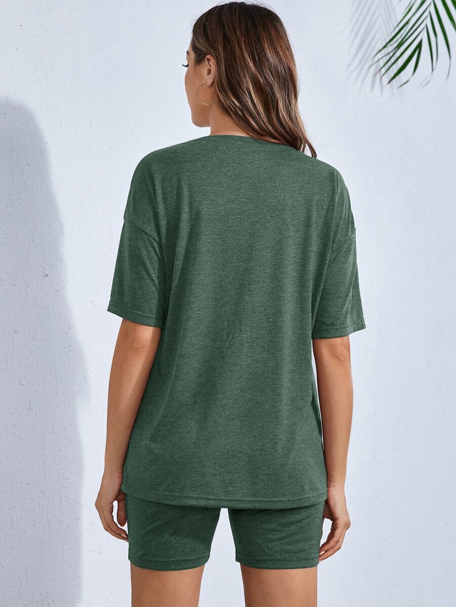 SHEIN Maternity Solid Drop Shoulder Tee & Biker Shorts