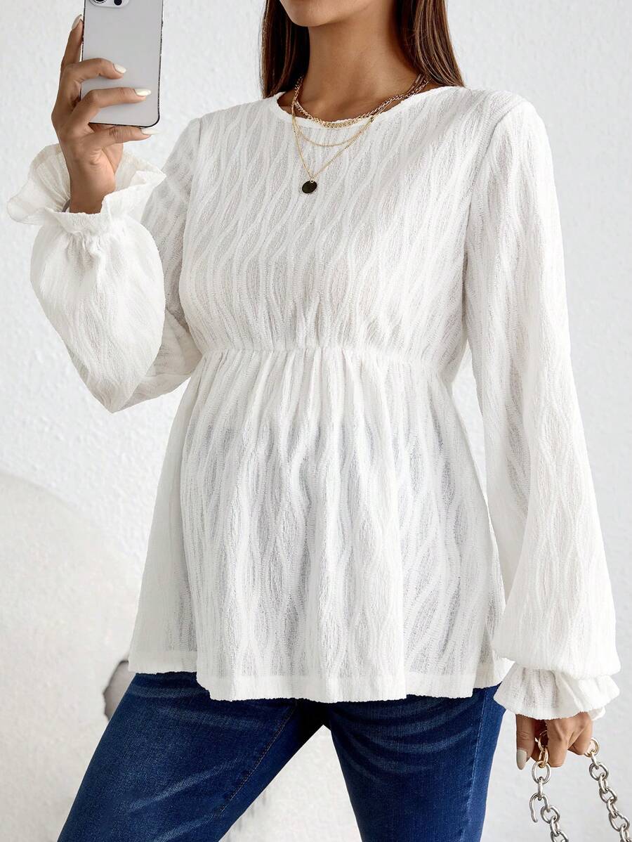 SHEIN Maternity Solid Flounce Sleeve Peplum Blouse