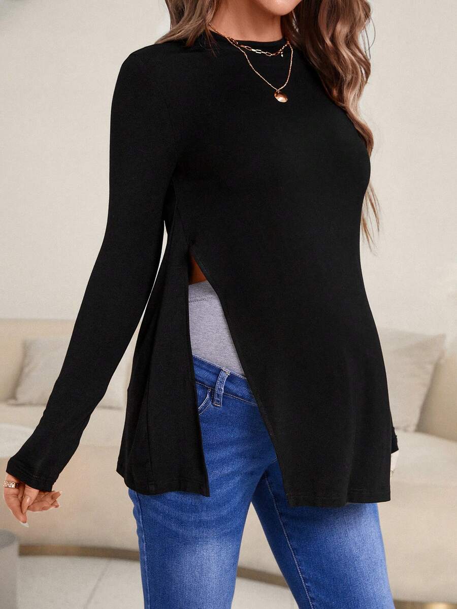 SHEIN Maternity Solid Split Hem Tee