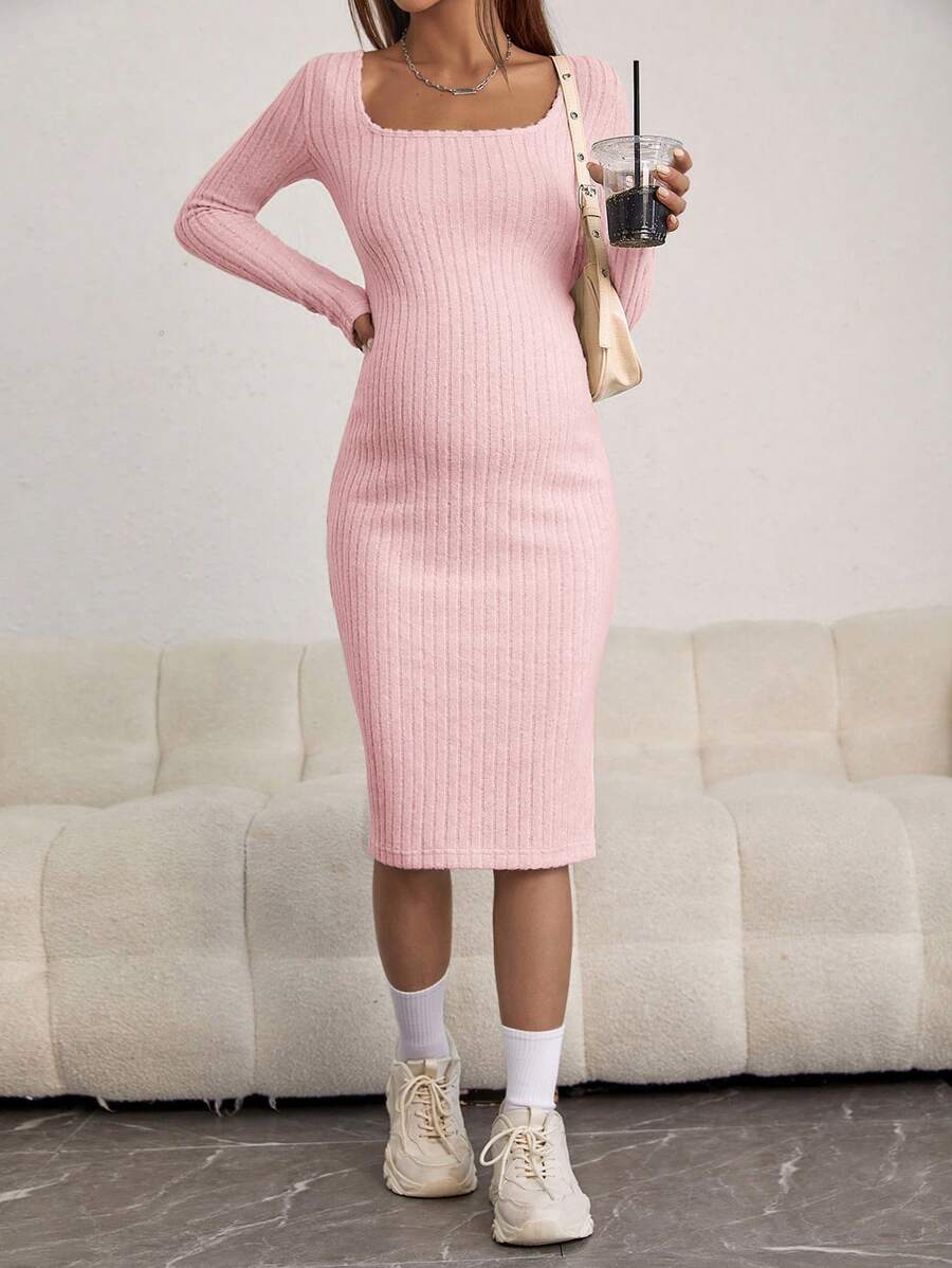 SHEIN Maternity Square Neck Ribbed Knit Bodycon Dress
