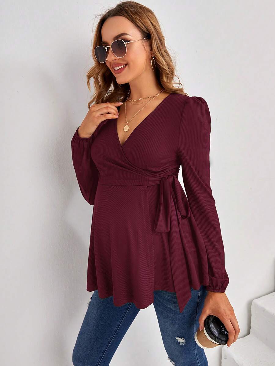 SHEIN Maternity Surplice Neck Knot Side Peplum Tee