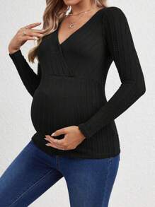 SHEIN Maternity Surplice Neck Rib Knit Tee