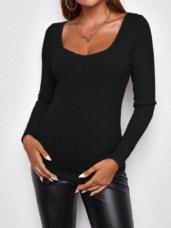 SHEIN Maternity Sweetheart Neck Ribbed Knit Tee