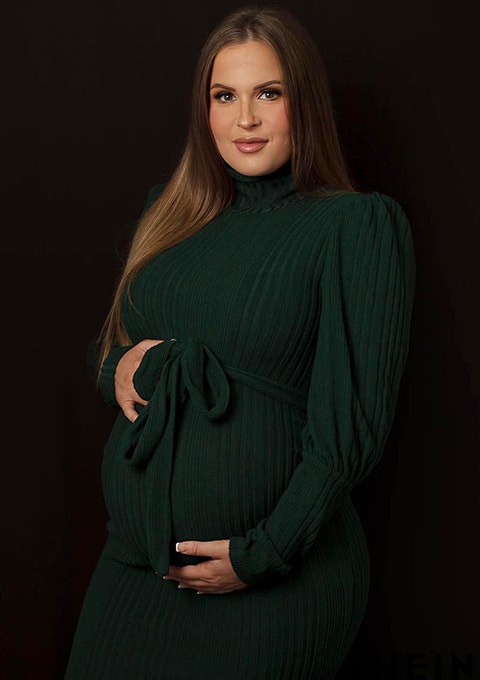 SHEIN Maternity Turtleneck Gigot Sleeve Belted Dress