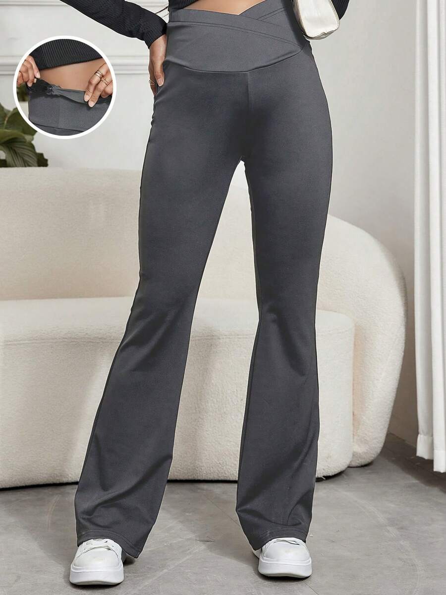 SHEIN Maternity Wide Waistband Adjustable Waist Flare Leg Pants