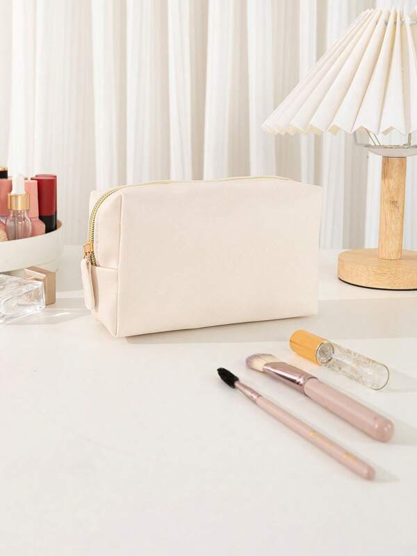 Medium Octagonal Cosmetic Bag,1Pc Pu Portable Cosmetic Bag Solid Beige Octagonal Bag Travel Cosmetic Bag Large Capacity Storage Bag Unisex Black Friday