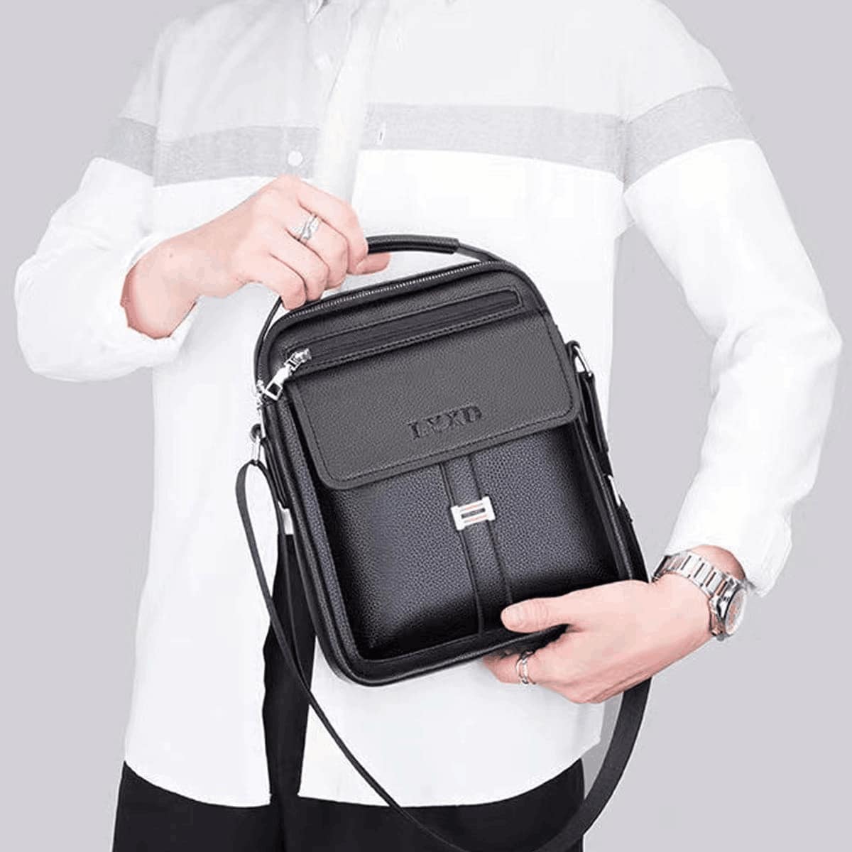 Men'S Bag Flip Shoulder Bag Trend Korean Casual Bag Small Body Bag Men'S Crossbody Bag Shoulder Bag With Adjustable Strap Office Supplies PU Leather Embossed Men Gifts