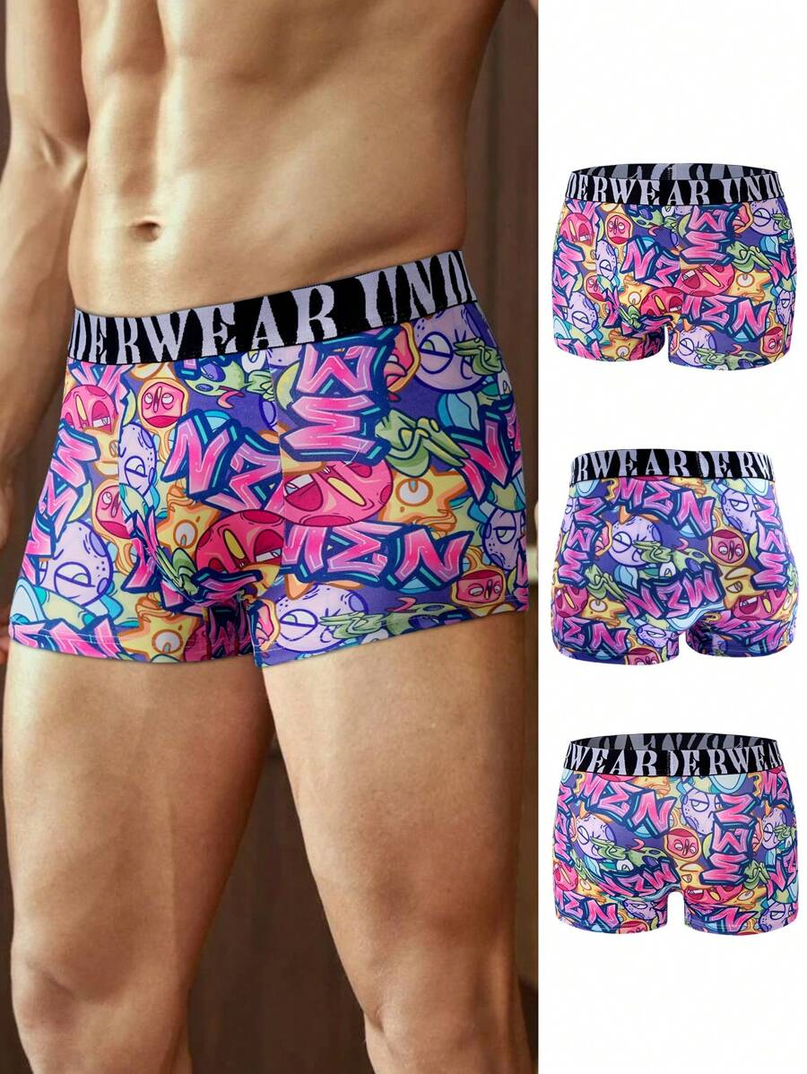 Men'S Cartoon Printed Letter Detail Weaved Belt Boxer Briefs