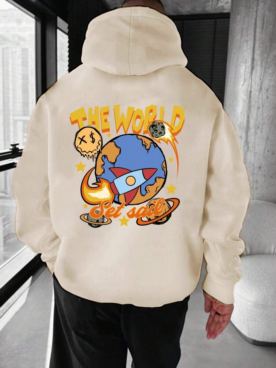 Men'S Cartoon Printed Warm Lined Loose Fit Hoodie