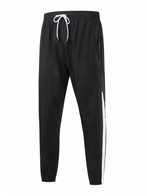 Men'S Casual Sports Elastic Waist & Cuffs Drawstring Pants With Pockets For Spring And Autumn
