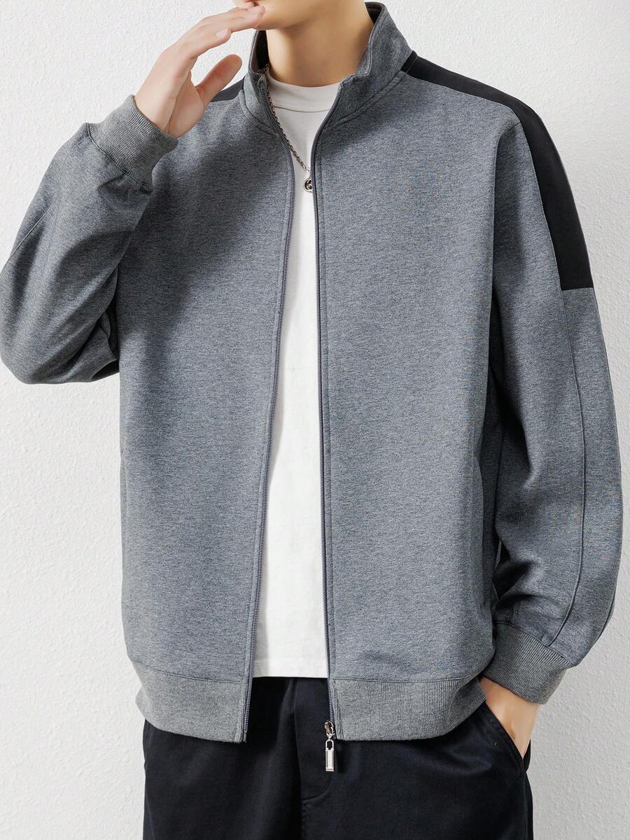 Men'S Contrast Color Stand Collar Zipper Up Jackets