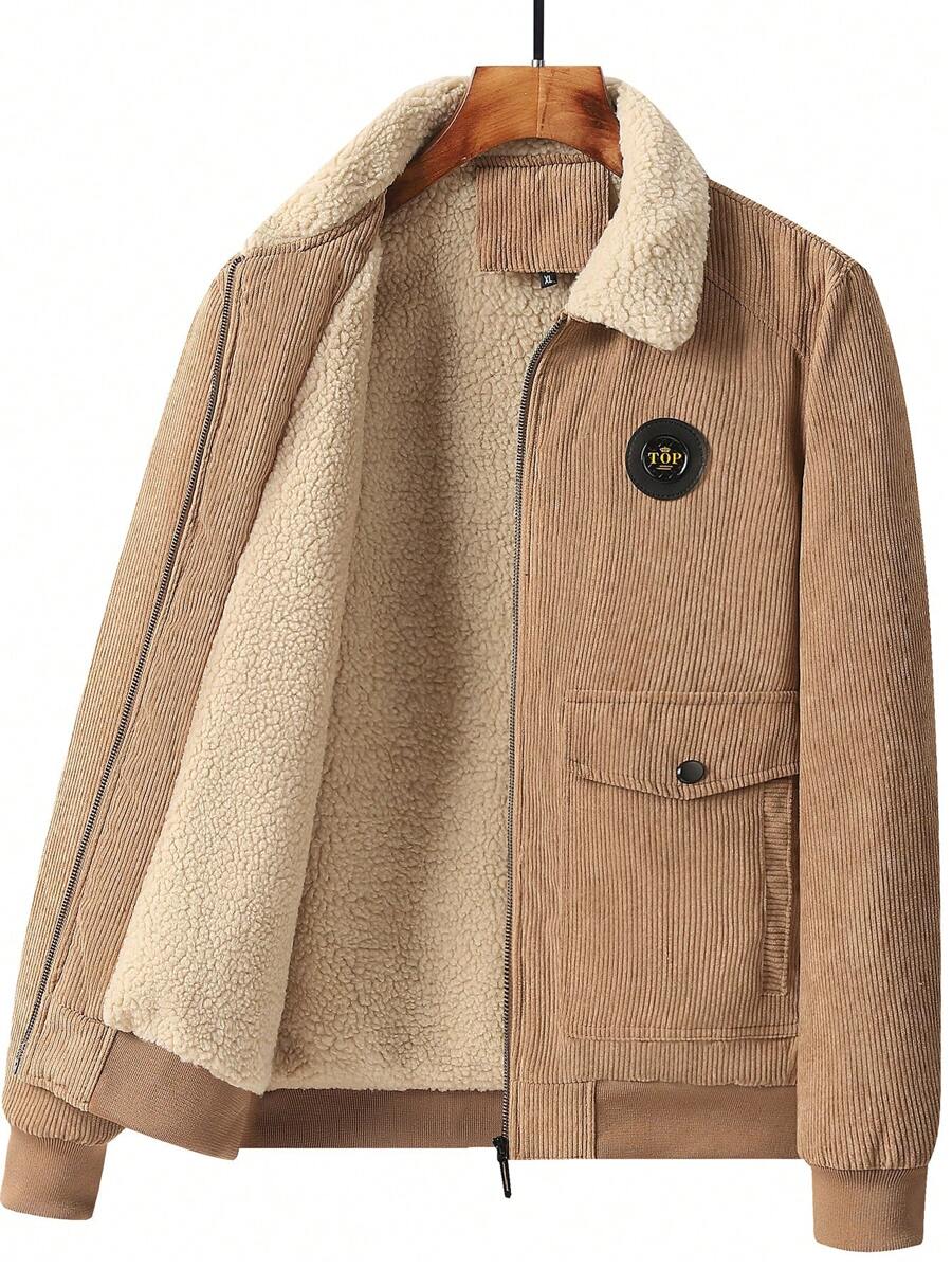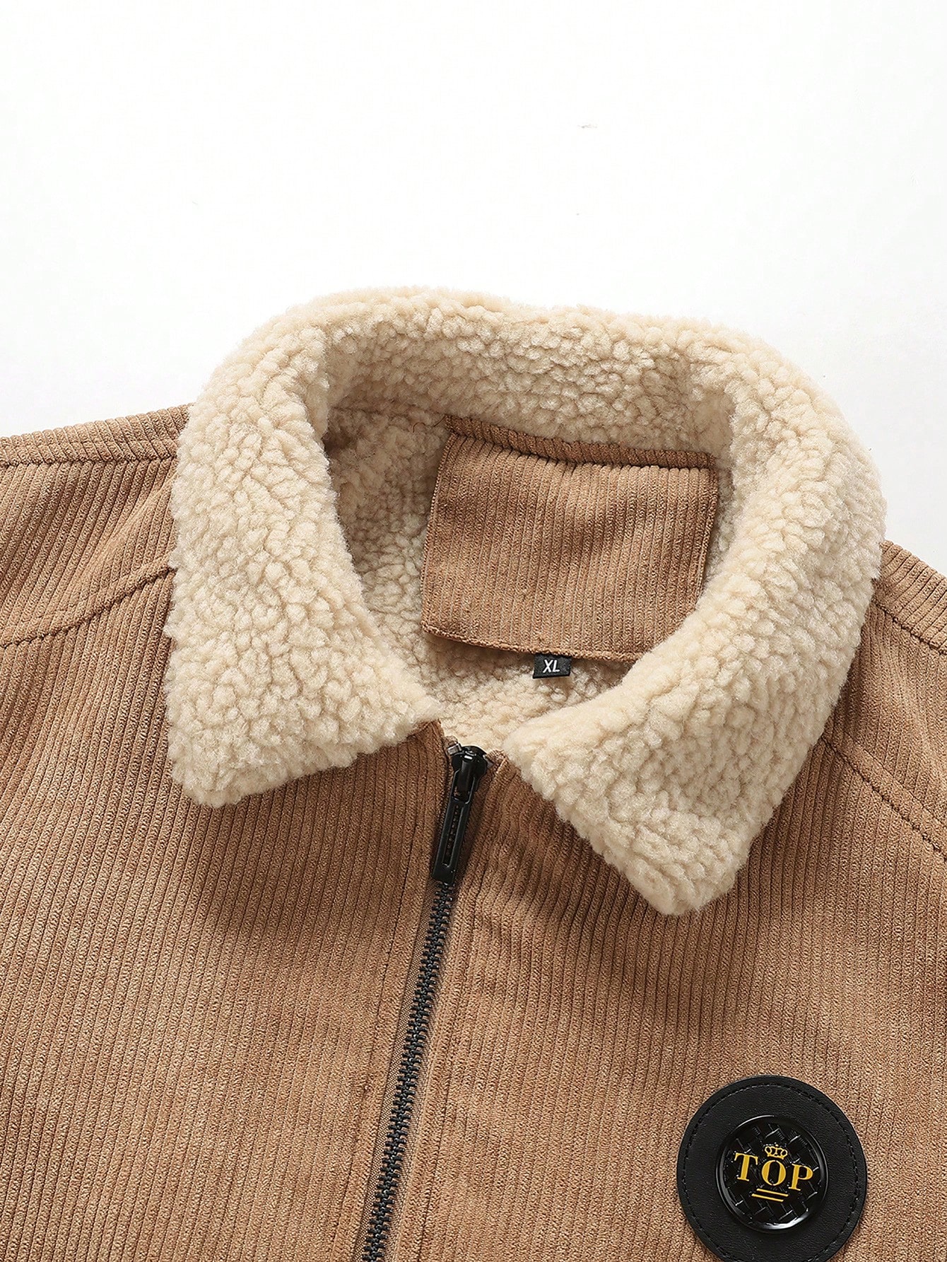 Men's Corduroy Jacket With Patch Embellishment And Fleece Lining