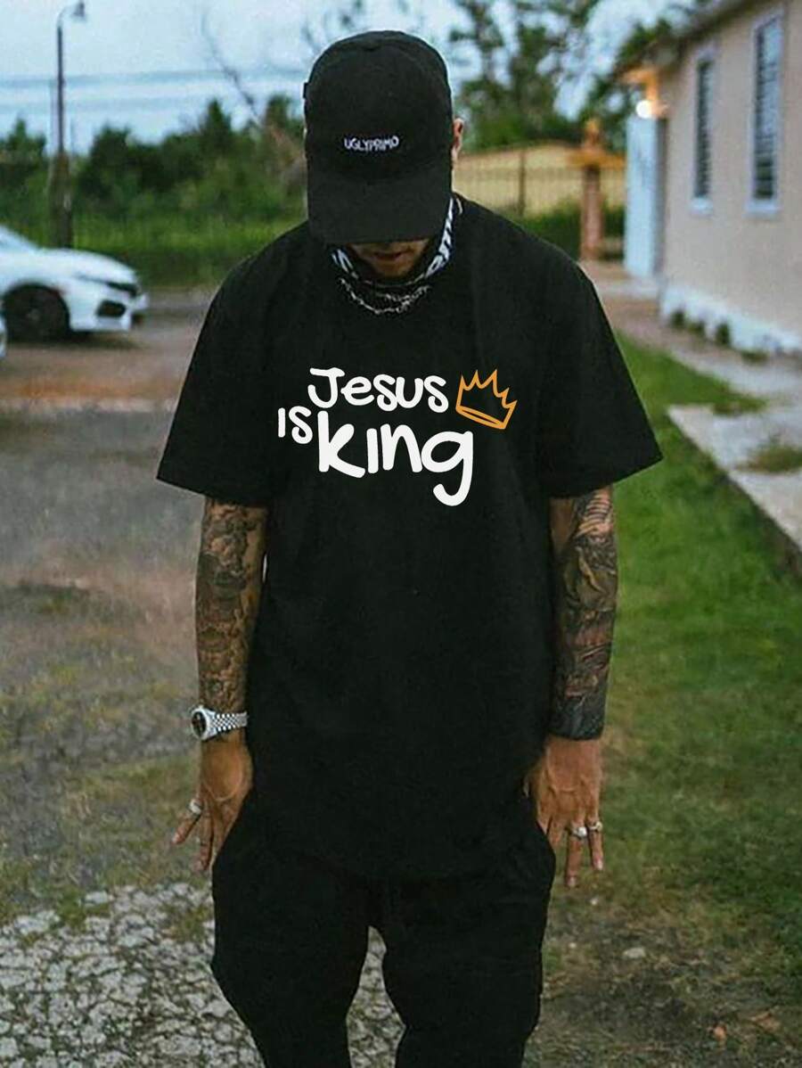 Men'S Crown And Slogan Printed T-Shirt Plus Size