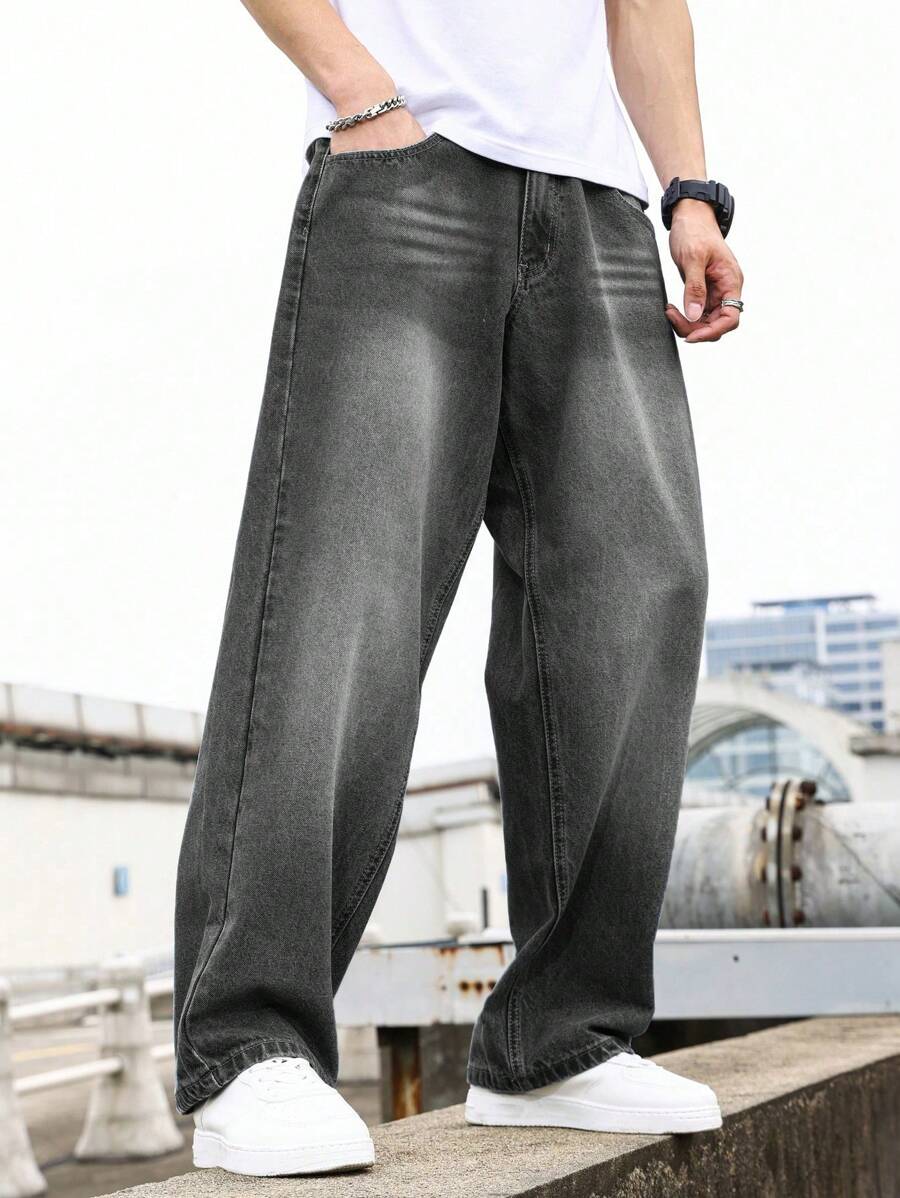 Manfinity Hypemode Men'S Denim Jeans, Loose Straight-Leg Jeans With Washed Design