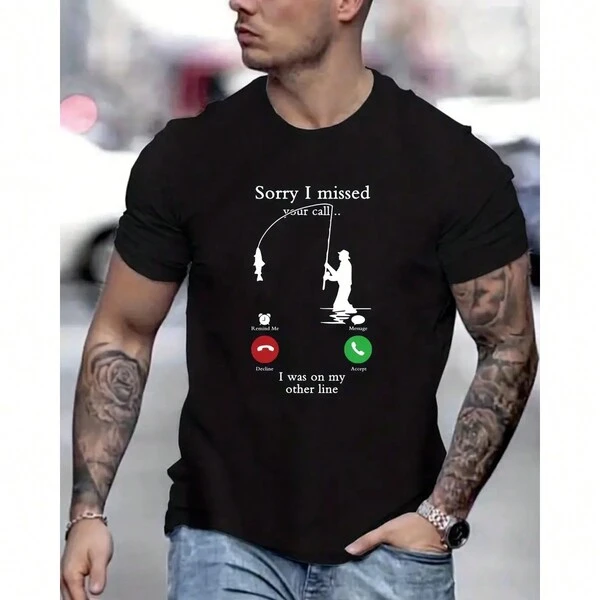 Men'S Fishing Themed Missed Call Printed T-Shirt