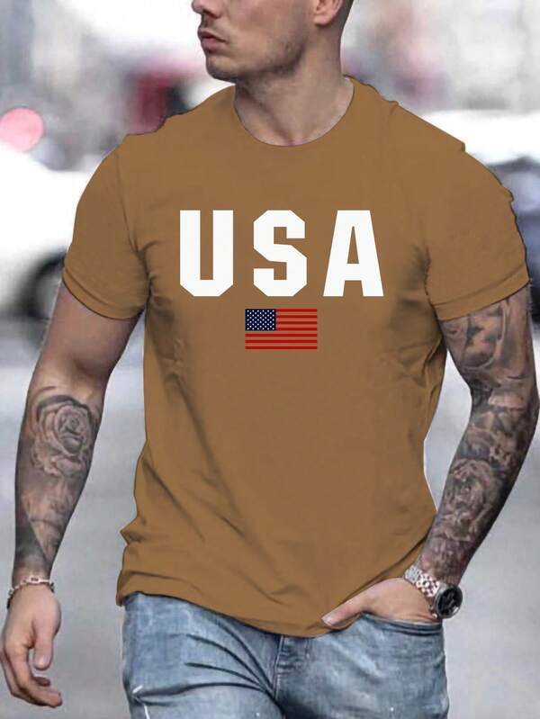 Manfinity Men'S Flag Print Short Sleeve T-Shirt