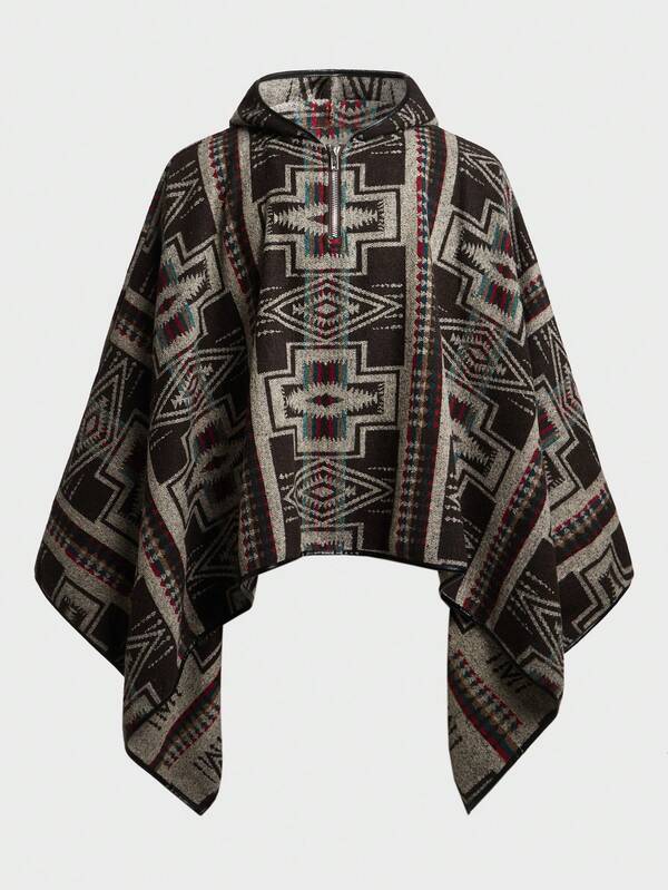 SHEIN Men'S Geometric Pattern Woolen Hooded Coat With Batwing Sleeves