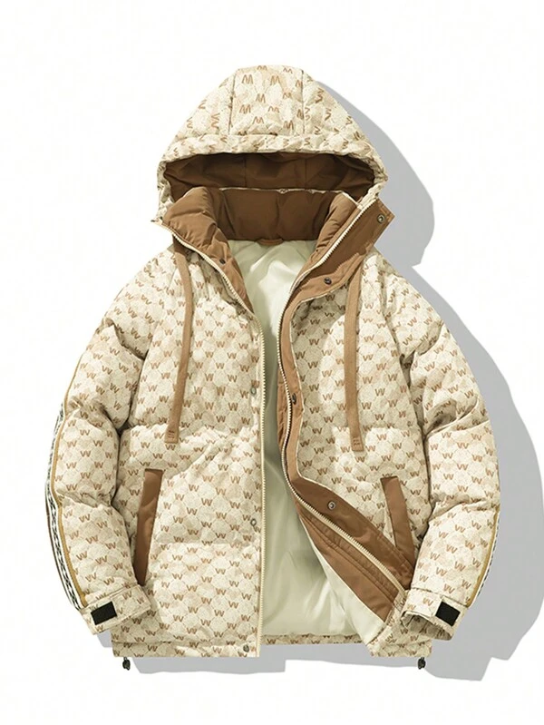 Men'S Hooded Jacket With Letter Print And Drawstring