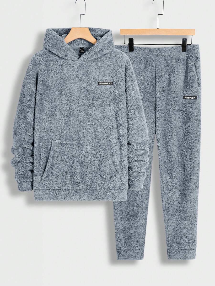 Manfinity Hypemode Men's Hooded Patched Detail Plush Sweatshirt And Long Pants Set