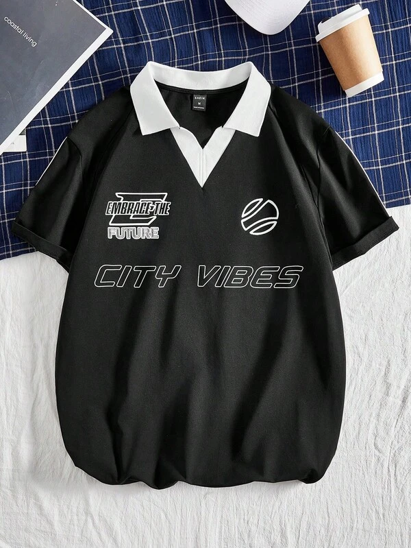 Manfinity EMRG Men'S Knitted Casual Polo Shirt With Letter Print