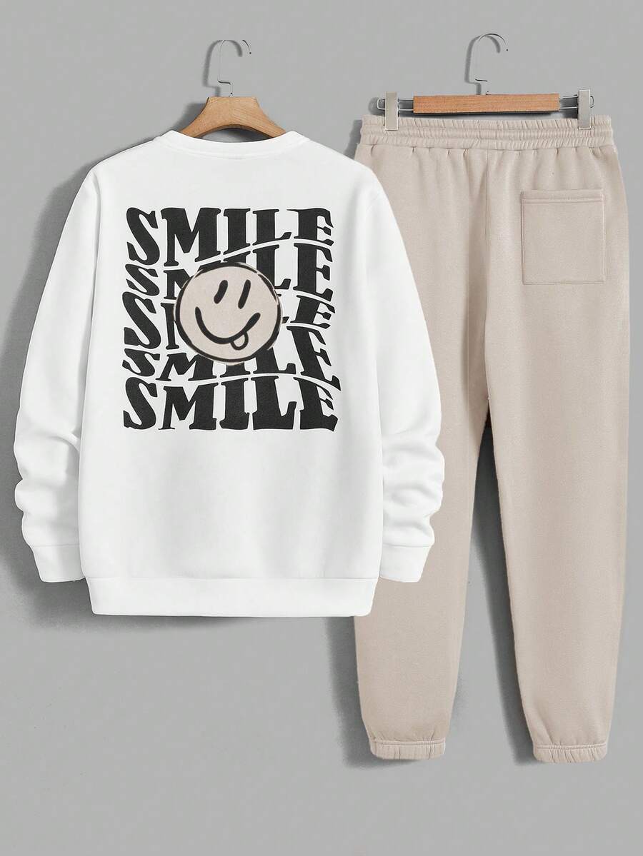 Manfinity EMRG Men'S Letter & Face Printed Sweatshirt And Long Pants Set