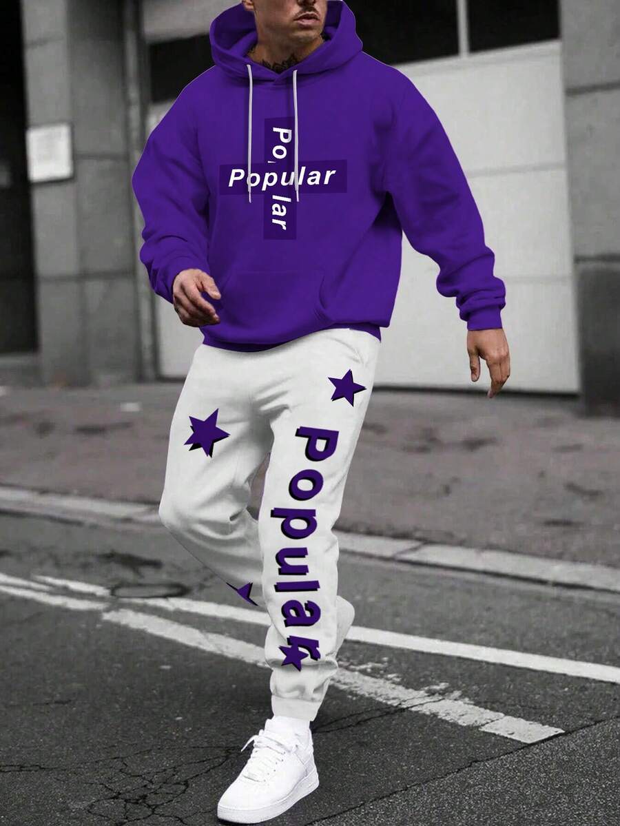 Manfinity Homme Men's Letter Print Drawstring Hoodie And Sweatpants Set