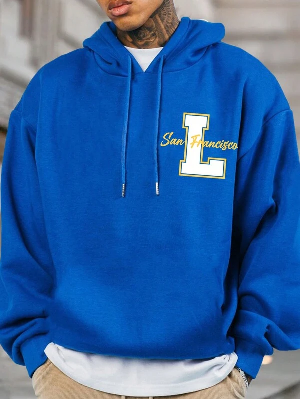 Manfinity Men'S Letter Print Drawstring Hoodie