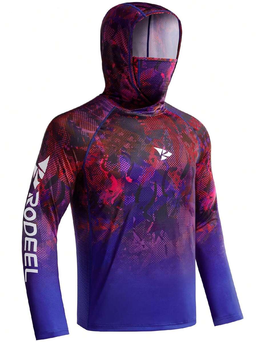Men'S Letter Print Drop Shoulder Sleeve Sun Protection Hooded Sport T-Shirt With Face Covering Gym Clothes Men