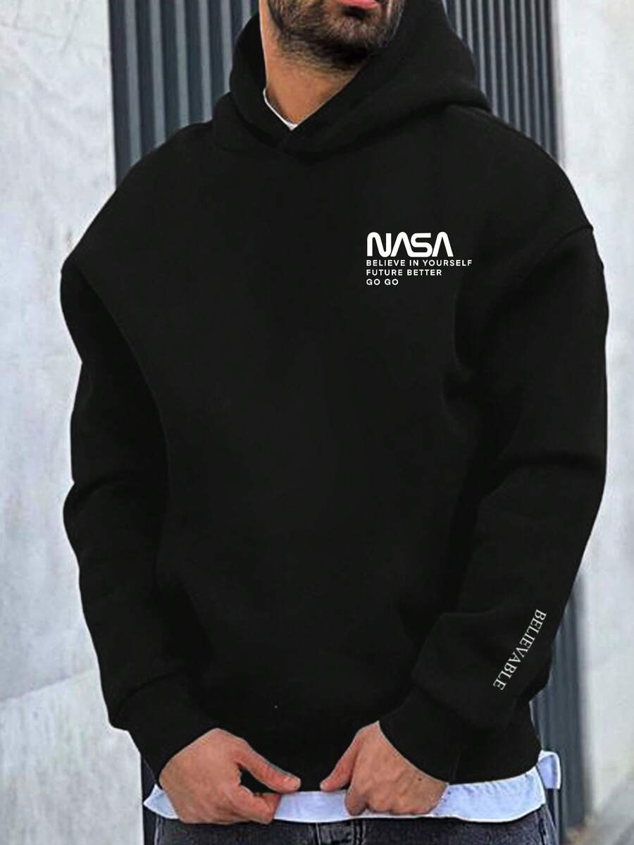 Men's Loose Fit Hooded Sweatshirt With Slogan Print