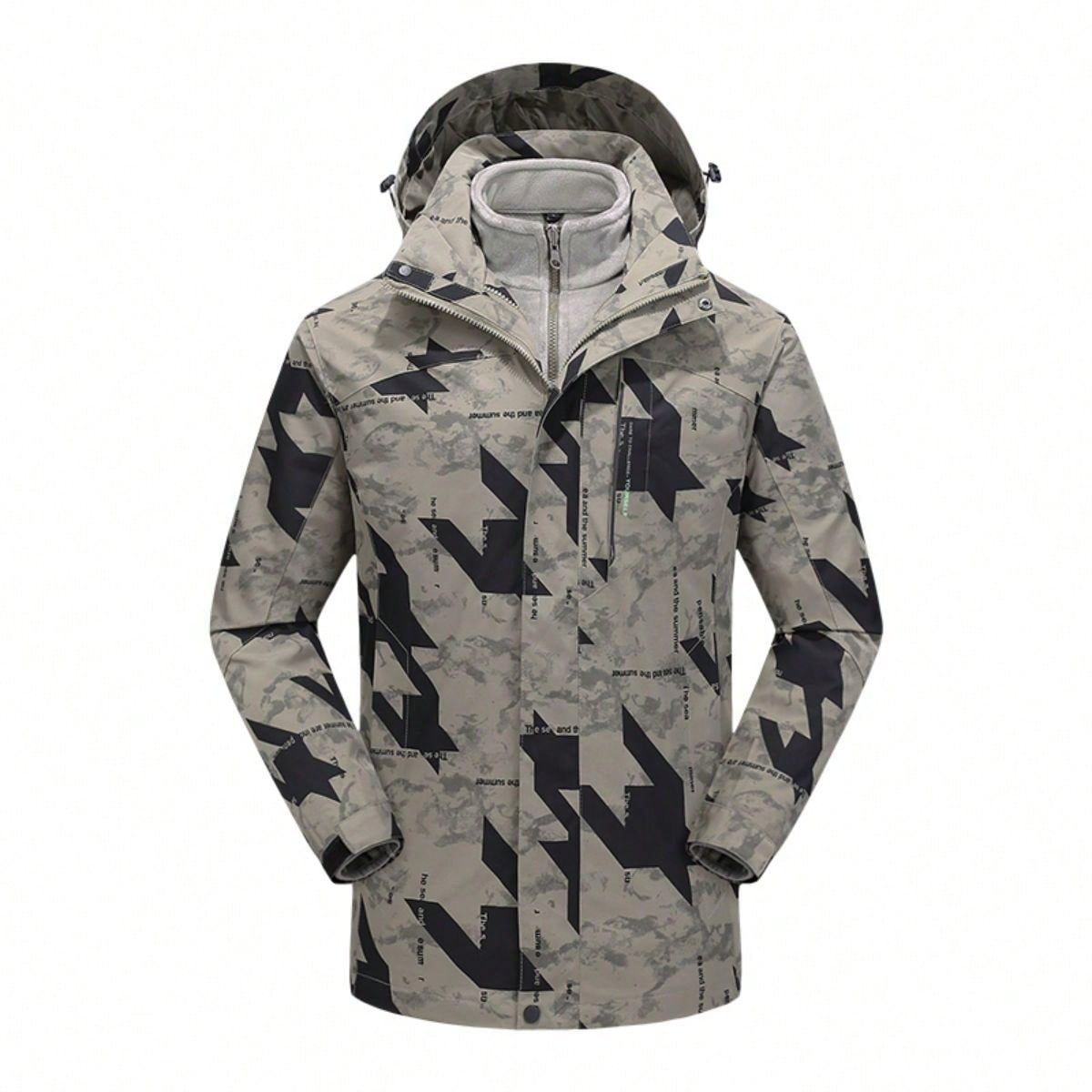 Men'S Outdoor Leisure Waterproof Windproof Printed Breathable Warmth Detachable Hood Fleece Lined Scratch-Resistant Softshell Jacket