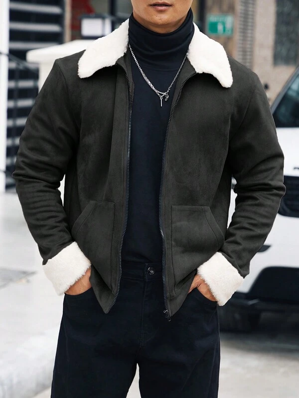 Men'S Patchwork Teddy Fleece Zipper Jacket