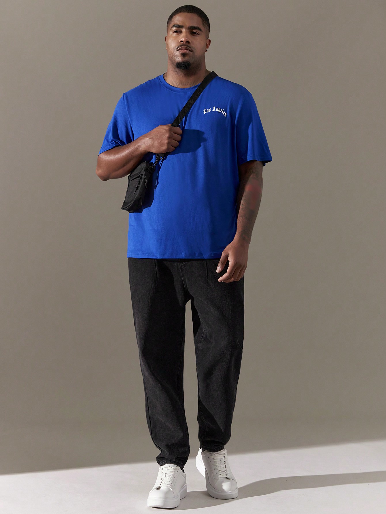 Manfinity Homme Men'S Plus Size Letter Printed Short Sleeve T-Shirt