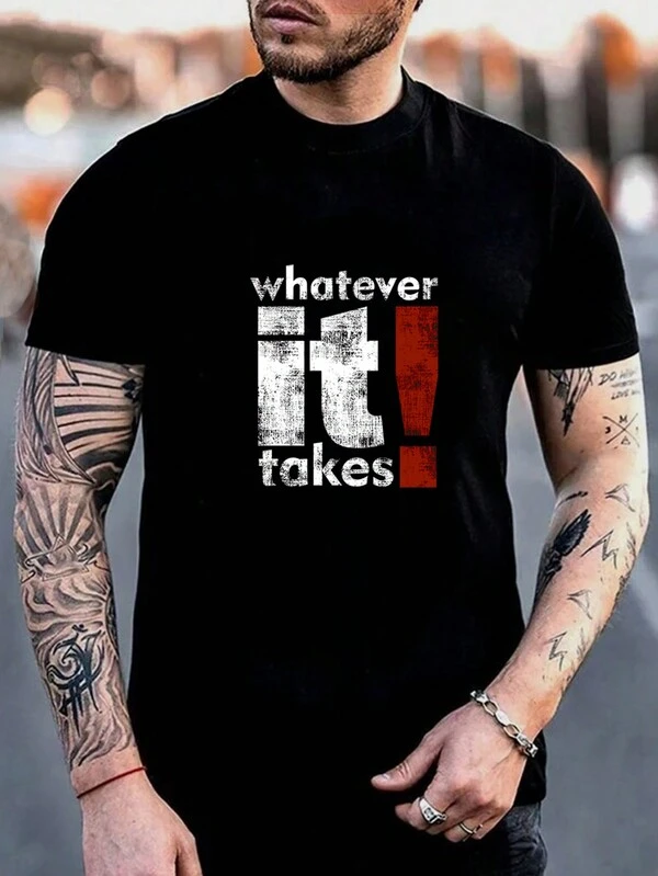 Manfinity Men'S Plus Size Letter Printed Short Sleeve T-Shirt