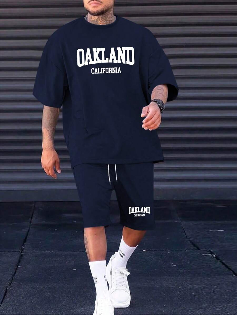 Manfinity Sporsity Men'S Plus Size Letter Printed T-Shirt And Shorts Set