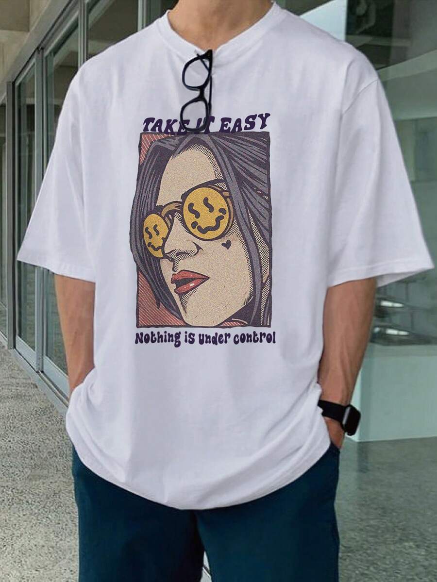 Men'S Plus Size Slogan Printed Drop Shoulder T-Shirt