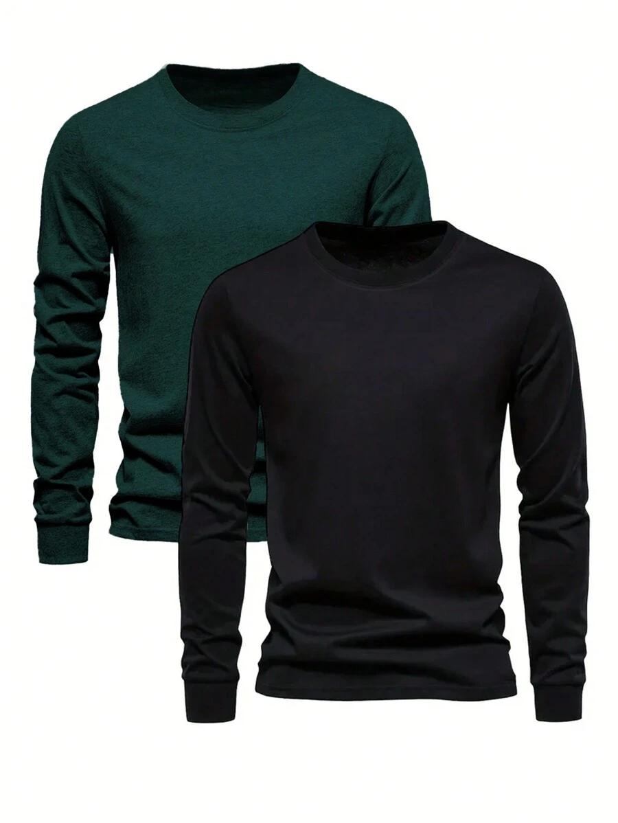 Manfinity Basics Men'S Plus Size Solid Color Long Sleeve T-Shirt